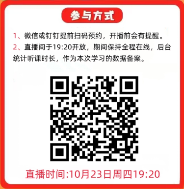 二、学习方式:微信扫描二维码或点击链接进入学习https://live.dingtalk.com/r/J2j8YlglJC