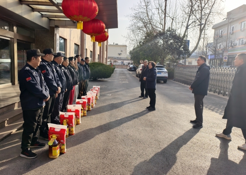 校领导与安保队员亲切交谈,细致询问他们的日常工作情况与生活保障细节,对他们一年来为维护校园安全付出的辛勤努力给予高度认可。王瑛指出,过去一年安保队员始终坚守岗位、履职尽责,是校园安全的中坚力量。特别是在万家团圆的节日期间,大家舍弃与家人团聚的机会,默默奉献,为校园秩序与安宁保驾护航,充分展现了责任与担当。她特别叮嘱,节日期间大家要在全力维护校园安全的同时,务必注意自身健康,并要求相关部门做好节日期间值守人员的生活安排与防寒保暖工作。